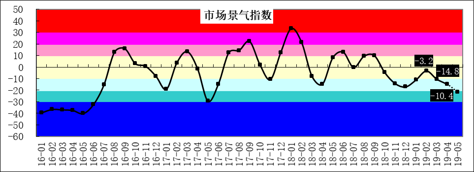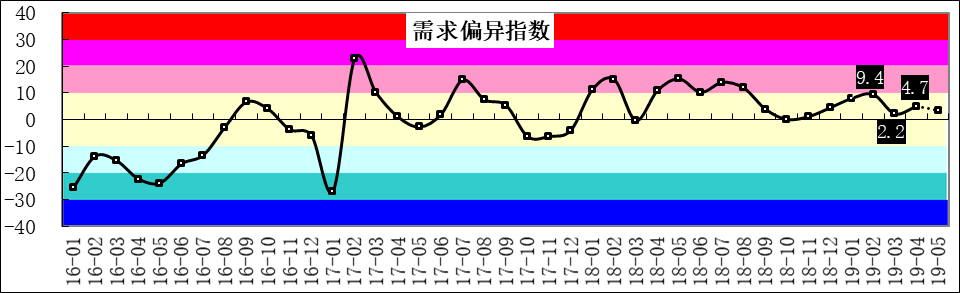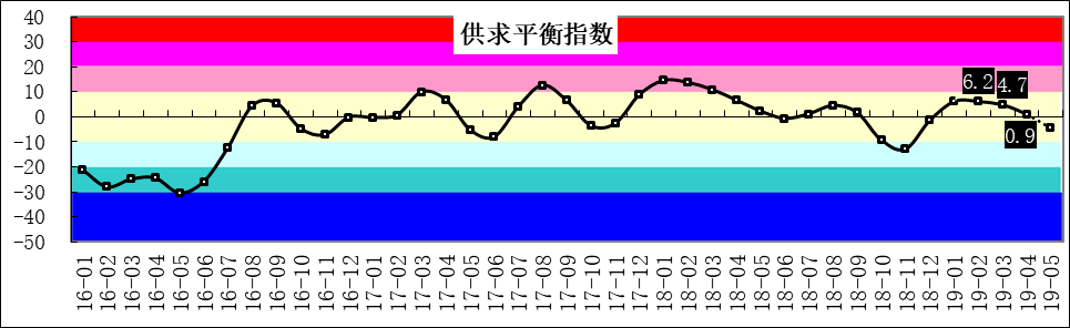 点击上方蓝字 即刻关注我们 2019年4月份,宏观经济运行保持在合理区间,主要耗煤产品产量有增有降,煤炭消费增幅回落,而煤炭供给相对充足,全社会库存增加,市场预期依然悲观,煤炭价格小幅下跌,煤炭市场景气度呈回落态势。进入5月份,煤炭需求下降,煤炭供给同比增长,中转地、用户库存继续上升,煤炭价格小幅波动,预判市场景气指数将继续小幅回落。 一、2019年4月份煤炭市场景气指数基本情况 2019年4月份全国煤炭市场景气指数分别为-10.4点,连续两个月回落,比3月终值(-14.8点)回落4.4个基点,市场景气度处于偏冷区间。 图1:2016年以来煤炭市场景气指数走势图 (一)煤炭需求增速回落,需求偏异指数仍处合理区间。 4月份,工业生产增速较上月明显回落3.1个百分点;当月固定资产投资增速比上月回落0.8个百分点,其中房地产开发投资增速比上月回升2.1个百分点,不过制造业投资、民间投资增速均有所回落。从主要耗煤产品产量看,4月当月火电同比下降0.2%,而生铁同比快速增长10.1%,水泥产量增长3.4%。主要受火电增速明显回落影响,煤炭需求增速也出现回落,结合前期煤炭需求波动情况,测算4月份煤炭需求偏异指数为4.7点,比上月小幅回升2.5个基点,总体仍处在合理区间。 图2:2016年以来煤炭市场需求偏异指数走势图 (二)存煤出现上升,供求平衡指数回落。4月份,煤炭日均消费环比回落,而规模以上煤炭产量环比回升,煤炭日均进口水平也有回升,需求回落而供给增长,全社会煤炭库存上升,其中用户库存、产地库存增加,中转地库存相对平稳。结合前期库存情况综合测算,4月份供求平衡指数为0.9点,比上月终值4.7点回落3.8个基点,反映煤炭市场供求向偏松方向发展、总体基本平衡。 图3:2016年以来煤炭市场供求平衡指数走势图 (三)心理预期指数低位运行,市场预期悲观。4月份,煤炭产地供应能力充足,煤炭消费环比回落,全国重点电厂库存居高不下;心理预期指数与上年12月基本持平。测算当月市场预期指数-30.0点,比上年终值(-25.4点)回落4.6个基点。 图4:2016年以来市场预期指数走势图 (四)煤炭价格小幅下跌,价格偏异指数回落。4月份,上旬部分产地受安全检查趋严、煤管票限制与省内需求旺盛影响,价格有所上涨,不过中下旬之后,由于下游用户需求不足,市场煤价格快速回落,总体看比比小幅下降。测算4月份煤炭价格偏异指数为-9.5点,比上年月终值(-5.5点)回落4个基点。 图5:2016年以来煤炭市场价格偏异指数走势图 二、2019年5月份煤炭市场景气指数预测 (一)煤炭需求下降。从经济基本面看,虽然4月份房屋新开工面积、房地产开发投资仍然保持了两位数增长且增速有所回升,但房屋销售面积仍然处于低位、前4个月下降0.3%;民间投资、制造业投资增速均出现回落;基础设施投资增速未如预期那样明显回升,前4个月同比增长4.4%,增速与1-3月份持平;加之中美贸易战继续升级,可能影响后期出口;总体上支撑煤炭需求的终端动力呈减弱趋势。从季节因素看,5月份是传统煤炭消费淡季。数据显示,5月上旬全国重点发电企业日均耗煤比上月下降8.7%,同比下降3.4%;5月前20日沿海六大电厂日均耗煤比上月下降8.7%,同比下降16.1%。考虑到前期及上年同期基数影响,预估煤炭需求偏异指数将小幅回落,仍在正常区间。 (二)煤炭供求朝偏松方向发展。数据显示,5月1-10日,全国主要产煤省部分重点煤矿产量环比下降5%,同比增长5%;存煤环比增长4%,同比增长2.8%。截止5月10日,电厂存煤比上月末增长4.7%;同比增长23%,截至20日六大电厂存煤比上月末增长5%。截至23日,CCTD主流港口煤炭库存比月初增长4.9%。综上,判断5月份煤炭库存继续增加,结合前期库存变化情况,预计煤炭供求平衡指数将继续回落。 (三)市场预期依然较为悲观。进入5月份,电厂耗煤量下降较快,主要港口锚地船舶同比明显减少,主流港口煤炭库存突破6000万吨,为今年以来最高水平。从期货市场看,近期由于当前火电需求低于往年同期,高库存叠加低需求使得动力煤09合约震荡下行,市场看空情绪较浓。预计5月份市场预期指数继续波动下行的可能性较大。 (四)市场价格小幅波动。进入5月份,全国市场交易煤炭价格指数基本平稳;至24日,秦皇岛港5500大卡/千克动力煤市场交易平仓价比月初下降5元/吨。预计煤炭价格偏异指数或将基本平稳、小幅波动。 综合以上分析,5月份四项基础指标中需求偏异指数、供求平衡指数和市场预期指数或将呈回落态势,价格偏异指数基本平稳,预估全国煤炭市场景气指数总体回落。 来源丨CCTD中国煤炭市场网
