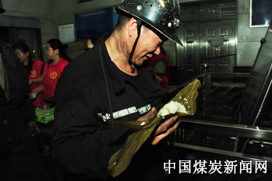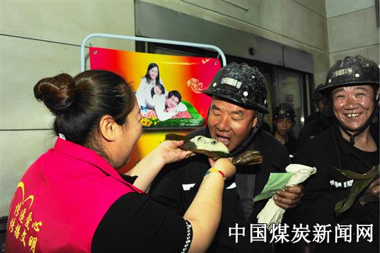 ![]() 下午三点整,随着一拨一拨上下井的矿工的到来,女工们把香甜的粽子和酸奶一一送到了矿工手中,并叮嘱他们越是节假日,越要搞好安全生产,切不可麻痹大意,一定要安全上班、平安回家,远离“三违”、遵章作业,度过一个开心愉快的端午佳节。一句句祝福、一声声问候,传达了女工情,温暖了矿工心。无不体现了女工家属对一线员工的关爱之情。在分发粽子的过程中,一些刚升井的矿工因为两手漆黑,女工协管员就主动剥去粽子的皮,把粽子喂到了矿工的嘴中。此时,看见矿工们发出来会心的微笑,幸福之感溢于言表。