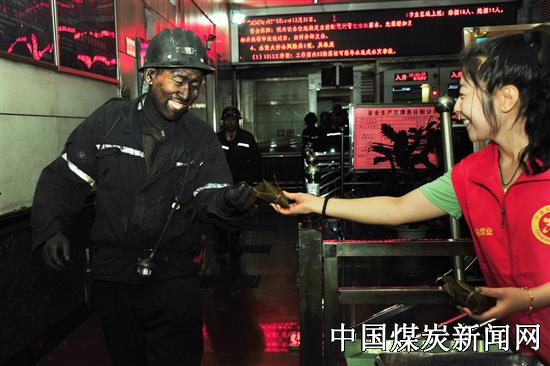 【本网讯】阵阵粽叶香,浓浓女工情。在一年一度的端午节到来之际,山西潞安集团司马煤业公司各生产岗位的矿工们依然坚守在自己的工作岗位上。为了让矿工兄弟度过一个欢乐祥和的节日,让每个矿工充分感受到公司大家庭的温暖,该公司工会女工部于6月5日下午在井口组织开展了“粽子送矿工、浓浓节日情”互动慰问服务活动。