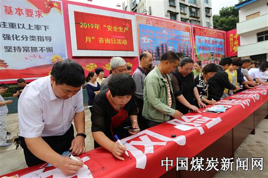 【本网讯】为进一步夯实安全基础,营造良好的安全氛围,6月14日上午,贵州盘江股份公司物业分公司组织干部职工隆重举行了以“防风险、除隐患、遏事故”为主题的安全月宣誓及签名等宣传活动,拉开了安全月各项活动的序幕。 上午8点半,分管安全副经理张俊军郑重领誓:“为了盘江安全,为了家庭幸福,为了个人安康,我坚决做到,坚持安全第一,做好自主保安,绝不违章作业”,切实增强了职工的责任感和使命感。随后,参加活动的领导干部职工踊跃参加,拿起笔相继在安全承诺标语上郑重地签下了自己的名字,以实际行动表明提高安全意识,落实安全规章制度从我做起的信心与决心。 为扩大宣传覆盖面,扩大活动影响力,物业分公司还在人员密集的二号桥美食城设立了安全生产月咨询日展台,过往群众广泛参与,纷纷在布标上签上自己的名字。活动中,工作人员为职工家属、门面商铺发放了生产安全事故应急条例、家庭火灾预防与自救及高层建筑火灾逃生常识等宣传手册200余份,掀起安全生产月活动高潮。