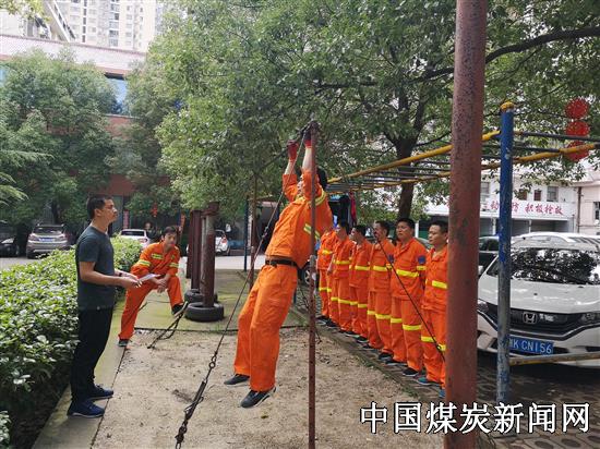 【本网讯】近日,湖南娄底市矿山救护大队为检验实训效果,全面摸清指战员综合体能素质,为下半年训练计划提供数据指导。体能测试严格按照娄底矿山救护大队年初制定的体能测试考核标准内容进行开展。体能测试为爬绳4米5、引体向上15次、100秒拉40斤重检力器80次等项目,图为测试现场。据悉,本次体能考核测试全部过关,训练效果显著。