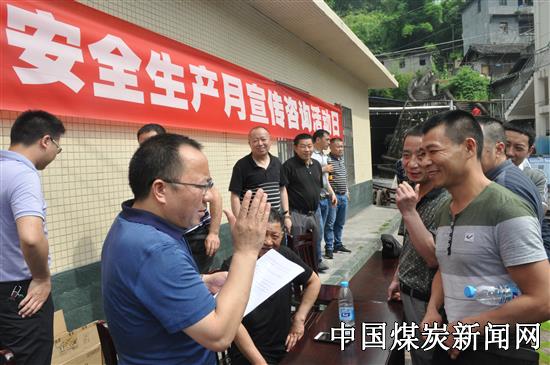 【本网讯】在全国第18个安全生产宣传教育月活动里,川煤集团广旺公司唐家河煤矿井口安全知识竞赛现场,矿长张克文在给员工出题,员工踊跃参加答题。通过这样的活动,提高全员安全意识和安全技能。