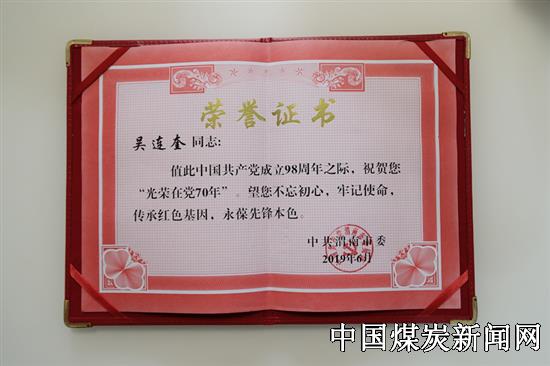 | 75年党龄老党员,深藏功与名 ——蒲白矿业公司看望“光荣在党70年”老党员吴连奎 | |||
