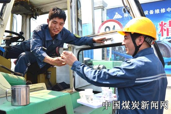 近日来,面对高温天气,国家能源准能集团设备维修中心进一步优化检修格局,时刻关注天气变化,科学布置检修任务,尽量避免高温时段开展较大型检修。同时,该车间充分保证绿豆水、遮阳伞等防暑降温食品、药品、设施等供应,多举措保证人身健康、设备高效运行。图为该中心职工为一线维修人员送绿豆水。