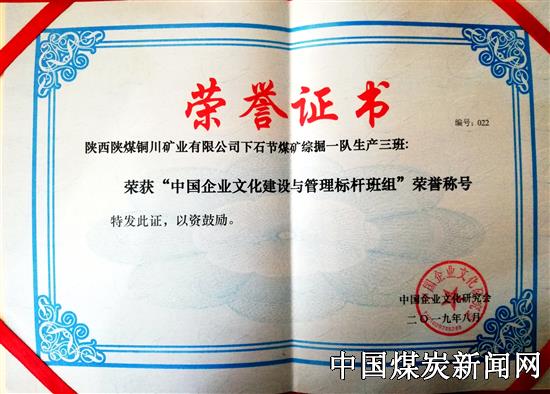 | 下石节煤矿综掘一队生产三班喜获“中国企业文化建设与管理标杆班组” | |||