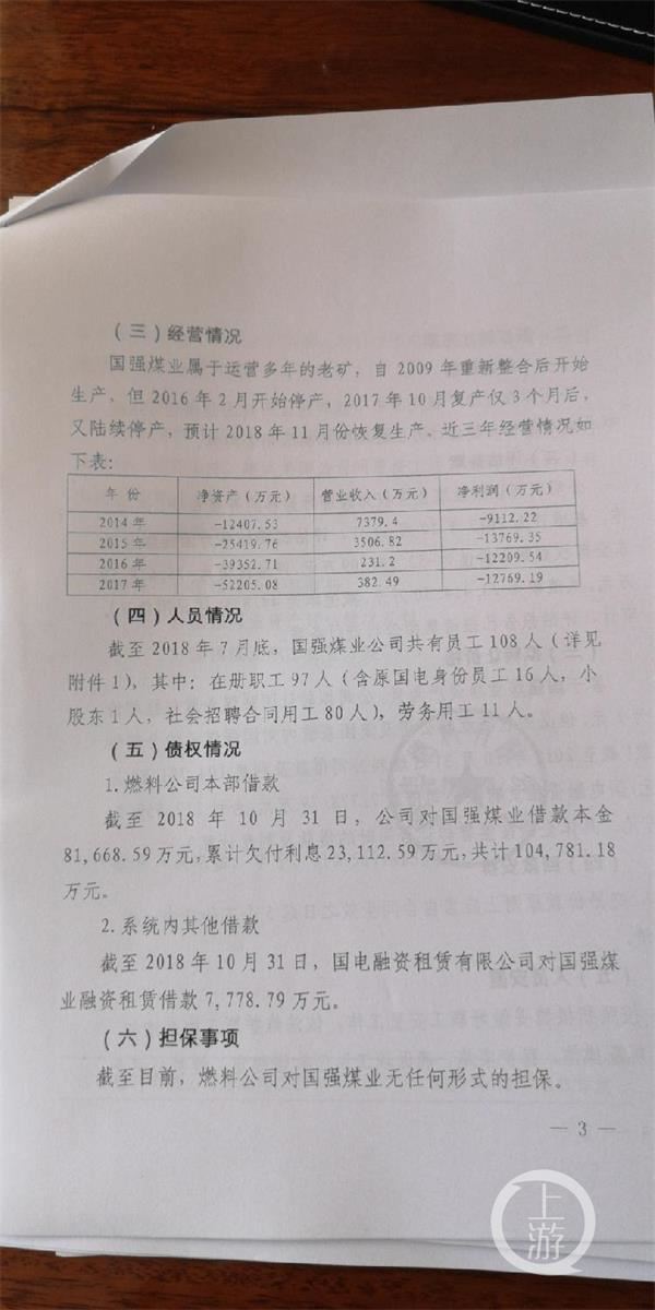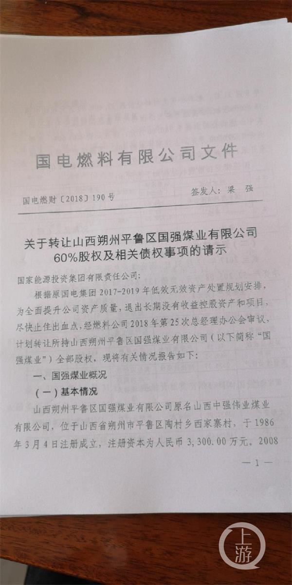 山西一煤矿与央企重组之后,累计投入矿井改造资金7.9亿元,断断续续一年多产了160万吨原煤后,于2016年3月实施停产保井。在之后的三年多时间里,煤矿能生产却不生产,煤矿反而变得资不抵债。随后,民资股东贾强将央企告上法庭,请求央企赔偿超1亿元的损失。 8月15日,朔州市中级人民法院开庭审理了此案,开庭前,法院委托了第三方鉴定机构对该煤矿进行了鉴定。法庭上,贾强对鉴定报告无异议,而国电燃料和国电电力对鉴定机构、鉴定报告均提出异议。最后法院宣布择期宣判。 ![]() ▲8月15日,案件在朔州中院开庭。摄影/上游新闻记者沈度 混改引发矛盾:投7.9亿改造却不积极生产 11年前,为提高煤矿安全生产状况,山西省开展以国有煤矿企业为主体的大型煤矿企业兼并重组整合中小型煤矿企业的活动。正是在当时的背景下,2008年7月,山西省朔州市山西中强伟业煤业有限公司(以下简称“中强伟业”)被国电集团旗下的国电燃料有限公司整合。 国电燃料出资32400万元,从原股东贾强手中收购60%的股权,转让后贾强持股40%。公司更名为——山西朔州国强煤业有限公司(以下简称国强煤业)。 2008年至2013年12月,国强煤业实施技术升级改造,实现了以综采为主的机械化改造。随后,国强煤业120万吨/年兼并重组整合项目通过竣工验收,核准年产120万吨;2014年6月,国强煤业取得煤矿安全生产许可证正式投产,当年生产原煤100万吨。 该技术改造工程投资额经国电集团审核为不超过7.92亿元,资金来源为贷款。而贷款来源为国电集团内部。 事情在2015年发生转折。当年10月国电燃料公司将国强煤业直接委托国电集团旗下的另一子公司国电电力发展股份有限公司(以下简称“国电电力”)进行管理。 据介绍,国电电力接手管理后,2015年的原煤生产量60万吨。自2015年全国煤炭行情走下坡路,2016年3月国强煤业经股东协商同意实施停产保井工作,并择机组织生产。 然而这一停就是三年多。2016年开始由于煤炭行情不好,但是2017年煤炭行情好转以后,国电电力仍未组织生产,导致亏损继续扩大,直到2019年3月份恢复生产,而仅生产不足两个月后,再次停产。 上游新闻记者调查获悉,平鲁区政府领导多次到国电电力以及国电电力上级单位进行沟通,然而并没有实质性的进展。由于国强煤业长期停产,导致连年亏损过亿元,累计亏损已超6亿元(不包括7亿多元的技改资金),最终被拖成了国电集团的特困企业。 ![]() ▲国强煤业2014-2017年4年的经营情况 。摄影/上游新闻记者沈度 技改后连年亏损被列为特困企业 作为持有国强煤业40%的民资股东贾强,眼看着国强煤业技改、投产又停产的全过程,却很少有机会参与其中,“混改后的企业基本是央企一家说了算,十年间只开过一次股东会,明显是公司治理结构存在问题,这也是导致已经投产的国强煤业又被列为特困企业的主要原因。”作为股东,我对企业承担40%的责任,也有40%的表决权,尽管起不到决定性作用,但应该征求我的意见,事实却并非如此。贾强说。国强煤业整合10年来只在国电燃料公司管理期间召开过一次股东会,而国电电力公司管理后一次股东会也没开过,有事都是他们向总公司请示决定。 对于这种局面的出现,国电系统内部知情人士称,“国电电力作为上市公司,当时是想把国强煤业纳入到其上市公司资产部分,但后来因为前期投入较高等原因,国电电力并没有完全接管,从而出现这种‘夹生’的情况。” 对于2014年至今连年亏损,其主要原因是停产停工,根本没有生产导致的。即使停产还会产生维护费用和管理人员工资以及承担8亿元贷款利息,所以连年亏损。 “2016年停产是行情不好,但2017年之后煤炭行情好转,是国电电力毫无缘由的不生产造成的,是人为原因。”对于国电电力为何不复产,贾强认为:“国电电力不是搞煤炭生产的,他是搞电的不懂采煤,他们怕担安全生产等风险,所以宁可亏损也不生产。此外,国电电力又没有投钱,投资方是国电燃料,国电电力不怕赔钱。” 对于国电电力迟迟不开工一事,国电燃料有关人士也表示不满,却又无可奈何。“我们曾多次向上级打报告复工,但是上级部门迟迟不批,我们也没办法。此外,我们也向上级反映一边组织生产,一边划转,但是上级不批准,只能眼看着亏损。” ![]() ▲国电燃料准备转让国强煤矿60%的股权及相关债权。摄影/上游新闻记者沈度 曾经有过起死回生机会 停产后职工迟迟拿不到工资,期间多次进京上访,2017年1月,国电集团同意国强煤业启动恢复生产程序;2017年6月,国电电力煤化部牵头组成复产督导组进驻国强煤业;直到2018年7月,新工作面安装调试结束,又投入四五千万元;直到2019年4月,国电电力安排旗下的内蒙古平庄煤矿的400多工人远赴山西朔州国强煤业进行生产。 一切似乎开始向好的方向方向转变。然而国强煤业在生产一个多月后,内蒙古平庄煤矿的400多工人接到上级命令要求停产撤回。国强煤业由此再次陷入僵局。 对于此次突然的停产,国电燃料有关人士对此也表示无奈,“费了九牛二虎之力好容易恢复生产了,又停产了。”关于停产原因,国电电力方面称,“进行安全检查,存在安全隐患。” 前述国电燃料方面有关人士称,“所有的煤矿永远都存在安全隐患,但是只要符合安全生产的条件即可。” “仅仅怕担责任就可以迟迟不开工吗?”贾强对目前的局面颇为不满。 “他们开工、停产都要