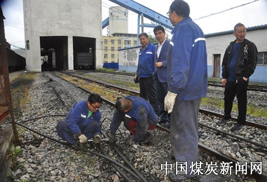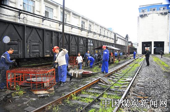 玉华煤矿洗选区拉运火车皮的导向轮位于铁路第二轨道,自安装后,在维护组精心保养下安全运行至今,由于长时间摩擦,造成绳轮处部分磨损出现凹槽,为确保系统安全运行,保障铁运原煤销售,按照检修计划,8月20日上午,该矿检修人员对导向轮的绳轮进行更换。然而,天公不作美,从上午开始就下起了小雨,给更换工作无形中增加了难度。干部职工并未因降雨而停止抢修工作,在分管矿领导、跟班干部及技术人员的指导下,齐心合力将直径为4厘米的钢丝绳从重达六七百公斤的轮子上掏开摆顺、卸下旧轮、将新轮安放调整到位、穿入绳子,通过拉、抬、撬等一系列工序,有条不紊地更换着绳轮。经过干群10余个小时的奋战,绳轮旋转带动着钢丝绳像一道守卫安全战线的卫士,守护者运煤铁路线。雨水浸湿参战人员的衣物,大家看着安全拉运的钢丝绳,发出了胜利的喜悦。用责任担当践行运煤使命,充分彰显了玉华人不怕困难、群策群力、顶风冒雨忘我工作的爱岗敬业精神。