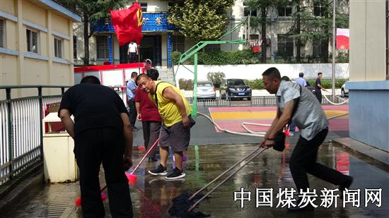 【本网讯】8月22日,贵州盘江月亮田矿社工科党支部充分发挥党员示范引领作用,开展义务劳动主题党日活动,组织全体党员冲洗机关球场,为矿召开二十八届“月矿杯”篮球运动会作好准备工作。 当日下午15时30分,机关球场上,烈日当头,党旗迎风飘扬,支部33名党员和2名入党积极分子分工协作,有条不紊,干得热火朝天。女党员黄瑞、鲁其美、阳丽丽等同志携带抹布擦拭栏杆、走廊;男党员林祥生、姚仕云、陶清明、田凤林等同志则用水枪冲洗地面,用扫帚清扫垃圾,用拖布収干积水。劳动中,党员们你追我赶、互不示弱,人人汗流浃背,欢声笑语一片。经过一个多小时劳动,机关球场、餐厅门口环境卫生焕然一新。