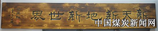 1943年11月14日,冯玉祥将军偕同夫人李德全到四川威远煤矿开展抗日献金救国运动,为感谢全矿员工捐款的热情,冯玉祥现场将带来的一对写有“驱逐倭寇、还我河山”的碎瓷花瓶赠送威远煤矿,同时还欣然题词书写了“新天新地新世界”7个苍劲有力的隶书,随后矿将“新天新地新世界”制作成匾额并悬挂于矿显要位置让人瞻仰。冯玉祥走后,全矿员工及矿方7次献金总额达149万元,极大鼓舞全国人民的抗日斗志。 由于历史原因,此两件物品,毁于文革时期。为了再现冯玉祥将军的文物,专业组想方设法,从唯一留存残缺的花瓶,准确丈量尺寸,通过网上咨询,联系上江西景德镇陶瓷公司可复制这样的花瓶,并签订合同,复制成功。同时在威远广告公司成功复制了“新天新地新世界”的匾额,下一步威达公司将此两件文物列为威远煤矿陈列馆镇馆之宝。