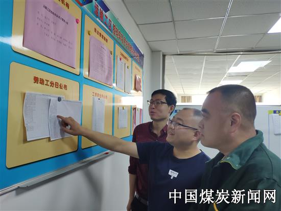 【本网讯】阳煤集团二矿在企务公开上以职工群众满意为目标,在各个队组都设立了公开栏,努力做到职工群众关注什么,就公开什么,主动接受职工群众的监督,使民主监督管理得到进一步深化。图为工会工作人员正在对企务公开工作进行检查。
