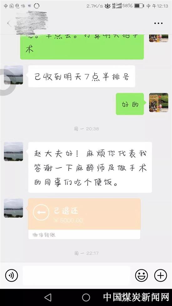 【本网讯】近日,华北医疗集团峰峰总医院邯郸院区骨三科赵志光大夫退还病人家属5000元红包的行动,赢得患者及家属对该院医护人员的医德医术由衷地称赞。 ![]() 原来,70多岁的郭阿姨因摔伤慕名来到邯郸院区骨三科。由于右肩及右膝关节肿胀、疼痛、畸形、活动受限,需行切开复位锁定钢板内固定植骨术。手术前,患者儿子于先生有点焦虑,非常担心手术的效果。于是,他给主治大夫赵志光转了5000元红包,想请主治大夫及麻醉医师吃饭,赵大夫说,这都是我们作为医生的职责,并如数退还了红包。