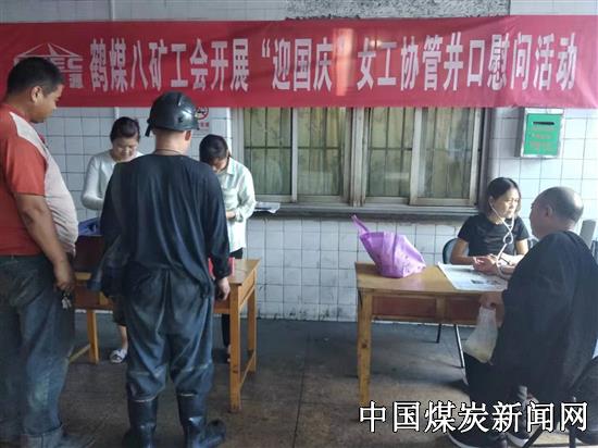 【本网讯】为了庆祝祖国建国70周年,促进节日期间安全生产,发挥女工协管抓安全的亲情优势,河南能源鹤煤八矿工会到井口开展了为期一周的“迎国庆”女工协管井口慰问活动。在井口大厅,协管员们热情的为一线员工缝衣钉扣、测量血压,并叮嘱大家一定要时刻注意安全,按章操作,确保安全生产,过一个快乐祥和的国庆节。图为活动现场。