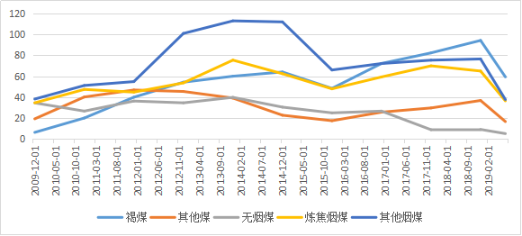 目前我国主要进口煤种按照进口量排名分别是:褐煤,其他煤,炼焦烟煤,无烟煤,其他烟煤等。截止2019年6月,中国动力煤(594, 0.00, 0.00%)(褐煤+其他烟煤+其他煤)进口11372万吨,占比73.8%,进口炼焦煤(1325, -3.50, -0.26%)3600万吨,占比23.37%,进口无烟煤3.2%。