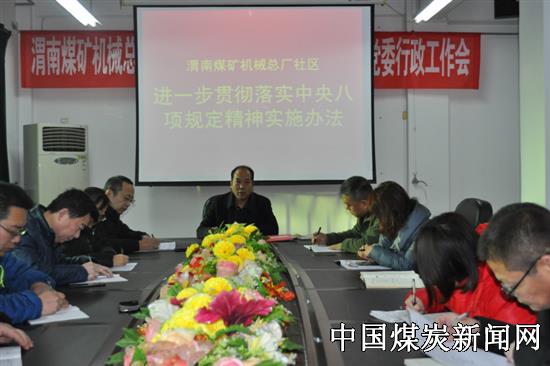 【本网讯】元旦、春节将到,陕西蒲白矿业渭南煤机厂社区12月29日组织党员干部学习矿业公司《进一步贯彻落实中央八项规定精神实施办法》等相关文件,抓住“节点”,抓好“考点”,以案为鉴,以案示警。