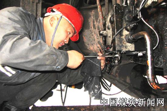图为该中心汽修车间职工检查保养车辆卸荷阀