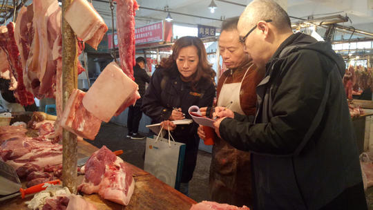 | 猪肉摊老板正分解90斤猪肉 执法人员一看发现异常 | |||