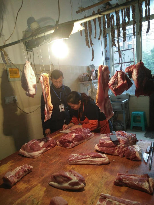 黄思禹 封面新闻记者 刘恪生 1月中旬,“春雷行动2020”暨知识产权保护执法行动在自贡市开展以来,自流井区市场监管局切实保障人民群众“舌尖上的安全”,查获一起经营未按规定检疫猪肉的案件,有效保障了人民群众身体健康和生命安全。 据介绍,东街市场监管所执法人员在自流井区灯杆坝临时农贸市场肉市某摊位检查时发现,该摊位老板杨某正在现场分解的一大块猪肉,视觉上呈不正常的红色,拿起来闻有异味。 现场称重后,这块疑似有问题的猪肉重量近90斤,未加盖检验合格验讫印章及检疫标志。同时,杨某也不能提供检验合格证及动物检疫合格的证明。执法人员当即对上述无检验检疫票据的猪肉进行了查封。 那么,这块猪肉来源何处?销售了多少?是否经过了检验检疫?杨某称,一个不认识的贩子主动上门问需不需要猪肉,当时他发现贩子的肉没有检验检疫等票据和证明,但由于近期猪肉销量旺盛,出于急于赚钱的目的,杨某还是在贩子那里购进这块猪肉,还未销售即被执法人员检查到。 目前,自流井区市场监督管理局已根据《四川省食品小作坊、小经营店及摊贩管理条例》相关条例对杨某做出了没收该批问题猪肉并作无害化处理、依法对其进行行政处罚。