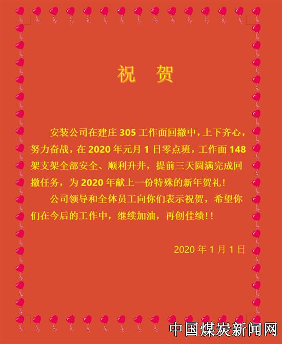 ![]() “安装公司在建庄矿业305工作面回撤中,上下齐心,努力奋战,在2020年元月1日零点班,工作面148架支架全部安全、顺利升井,提前三天完成回撤任务。”为什么能提前完成工作任务呢?笔者通过电话采访该公司安装公司经理秦永平得知,203、305工作面同时回撤,人员严重不足,这就是现实,怎么办?为了克服人员不足带来的影响,秦永平亲自挂帅,要求区队管理人员与职工同上同下,班组长发扬“领头雁”作用。为了确保工程按期完成,一方面出台全勤奖制度,同时增加运输车辆,另一方面,倡导煤矿人特别能战斗、特别能吃苦、特别能奉献的蒲白精神。“我已经连续三个月没有休假了”在电话采访时秦经理这样说到。2020年,该公司积极推行“走出去”目标管理模式,在秦永平的带领下,他们用坚守和智慧向2020年元旦送上一份特殊的贺礼。 无独有偶,该公司第四项目部经理李驰发来这样一条短信“胡董您好!我是李驰,截止12月份第四项目部完成运量91万吨,全年累计运量951万吨,较去年同期增加50万吨,安全无事故。”该项目部共有职工12名,其中有4名女同志。在寒冬里,她们巾帼不让须眉,对设备进行日常的巡检过程中,她们发现提升系统钢丝绳有严重断丝现象,就与男同志们一起进行钢丝绳的更换,当提前两个小时安全顺利的完成两套提升系统钢丝绳的更换工作后,手上、脸上满上油污的她们,互相看着开心的笑了......2020年,该公司实施深挖内部潜力,增强盈利能力战略,为老区精准治亏贡献一份力量。正是由于该项目部具有坚定的信念和共赢的理念,该公司有了新年第二份特殊的贺礼。