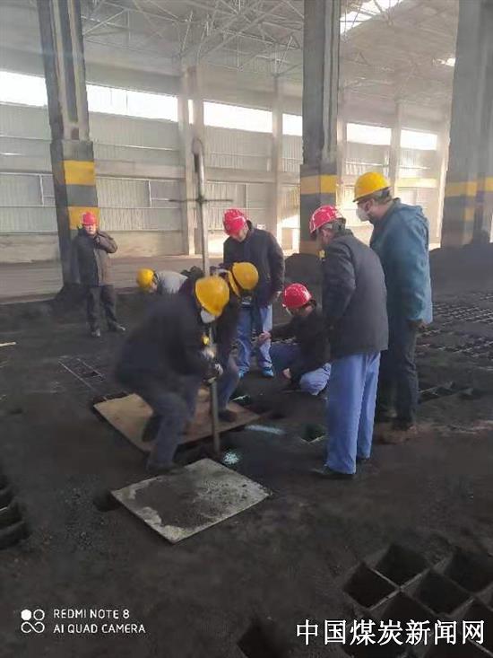 【本网讯】“储煤场卸煤沟燃煤结块,叶轮给煤机无法抓料,皮带无法上煤”,2020年1月28日,同煤漳电大唐、同达热电公司燃化除灰部输煤运行紧急通知。接到通知后,设备维护部输煤检修班立即组织人员现场实地检查,发现燃煤结块的原因是由于冬季天气寒冷,加之前期本地区下雪,燃煤在储存和拉运过程中含有水份,极易冻结成块。输煤检修班面对困难和挑战,大家集思广益、群策群力,发挥各自的聪明才智,利用加长的薄皮钢管在尾部焊接把手,从卸煤篦子网眼处向下将冻的煤块捅开,并安排专人在工作现场监护,以防止煤块掉落伤人。经过班组全员连续一周的奋战,最终将所有冻煤全部清理完成,下一步班组将安排专人每日跟踪煤场情况,发现问题及时上报、及时处理。