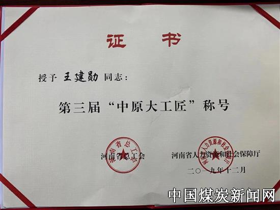 | 帘子布公司职工王建勋荣获“中原大工匠”称号 | |||