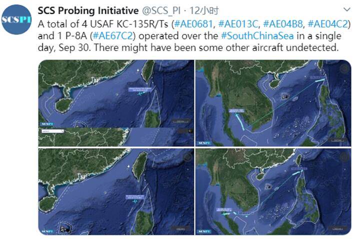 美军近日频繁派机进入南海上空,在9月30日当天,美军又被曝出一天之内向南海上空出动了5架飞机。