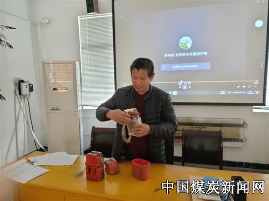 “大家要认真观看ZH30(B)BGK隔绝式化学氧自救器使用步骤视频,一会每人都要上来演示一下……”安徽淮北双龙矿业公司通风区会议室里该区支部书记提高嗓门说道,以让职工们提高注意力,牢记操作步骤。大家都认真听着、记着。