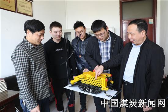 图为10月12日,该矿综掘三队技术员利用模型在为自己的帮扶对象讲解综掘机的工作原理与内部结构。