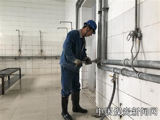 【本网讯】进入四季度,冀中能源峰峰集团电业分公司薛村电厂工会时刻关心职工工作、生活等情况,扎实做好后勤保障工作,提升职工满意度和幸福感。图为该厂检修工正在清理澡堂管路。