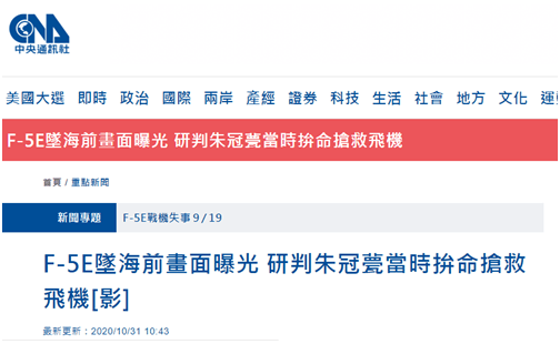 | 台军失事F-5E战机最后身影曝光,台媒:飞行员试图控制战机、飞很低 | |||