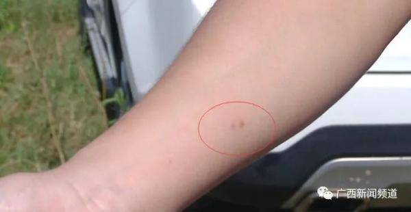 南宁市民 龙先生:开门一下车,我从驾驶室下来,下来以后不到一分钟,我开始发现腿上咬得疼,我就把裤子打开一看,腿的两侧,全部被咬,蚂蚁爬的满满得,这个就是蚂蚁咬的,当时就是满满的。