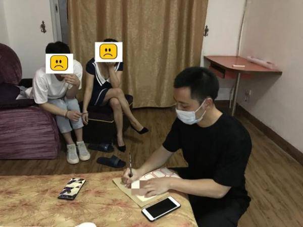 同时,这个团伙有着严密的管理制度,团伙成员有专门在网上利用微信群聊招揽嫖客的,有以“技师”名义专门找“卖淫女”的,有专门负责接待和谈价的,“交易价格在900——1500元人民币不等,所谓‘茶艺师’其实就是卖淫女。”民警介绍,为了躲避公安机关打击,一般不接待陌生顾客,虽然有人专门负责网上招嫖,但大多数都是常来的嫖客介绍的,一般人还真不知道里面的猫腻。 亮剑“茶庄”捣淫窝 “警察,不许动……”4月17日晚23时许,抓捕组在龙圩某小区内将“1号人物”廖剑某抓获。与此同时,另外的几路抓捕组相应收网,抓获该团伙其他成员。