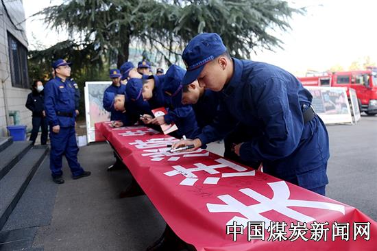 【本网讯】11月9日上午,山东兖矿保安公司围绕“关注消防,生命至上”活动主题,在机关驻地开展了“119”消防演练活动,通过火灾逃生、消防救援的方式,将宣传月活动推向高潮。东华公司领导及保安公司党政及消防支队有关领导等200余人出席并参加了此次活动。