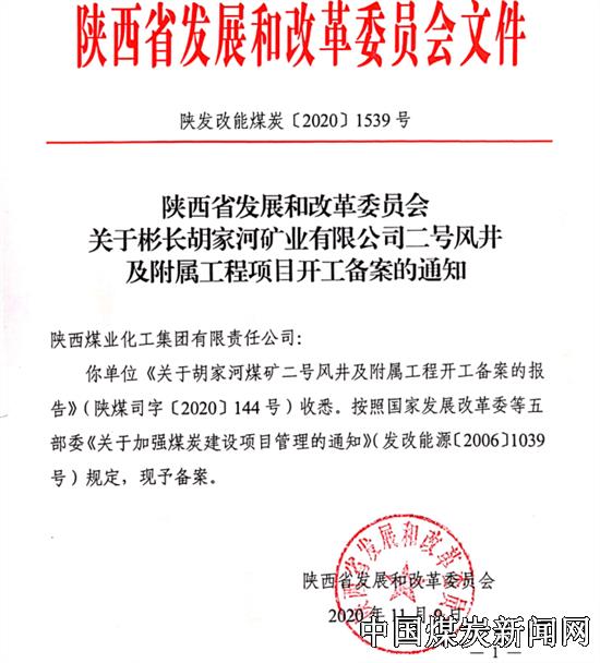 【本网讯】喜讯!11月9日,从陕西省发改委传来消息,陕西彬长胡家河矿二号风井及附属工程项目正式取得开工备案批复!这标志着胡家河矿井建设发展迈入崭新阶段。