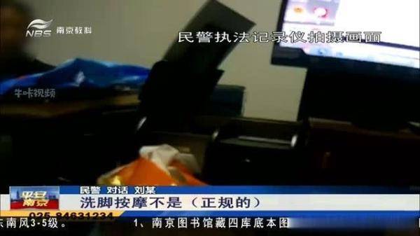 近日,六合公安分局雄州派出所接到了市民刘某的举报,位于雄州街道的某足疗店内,有不正规服务,接到举报之后,民警立刻前往调查。 民警对话足疗店客人:(师傅,你在这边干什么的?)
