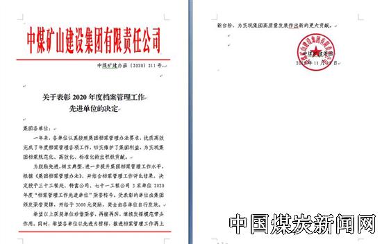 | 中煤七十一处荣获2020年度集团“档案管理工作先进单位”荣誉称号 | |||