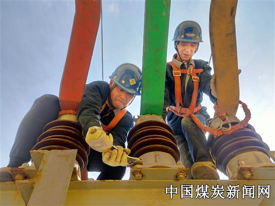 【本网讯】为切实保障矿井安全供电,冀中能源峰峰集团电业分公司供电工区对所属变电站进行了拉网式安全隐患大排查,坚决做到“隐患在一线发现,隐患在一线处理”。图为该工区运行维护人员正在处理变压器隐患。