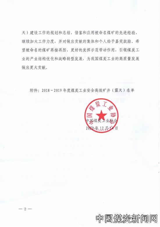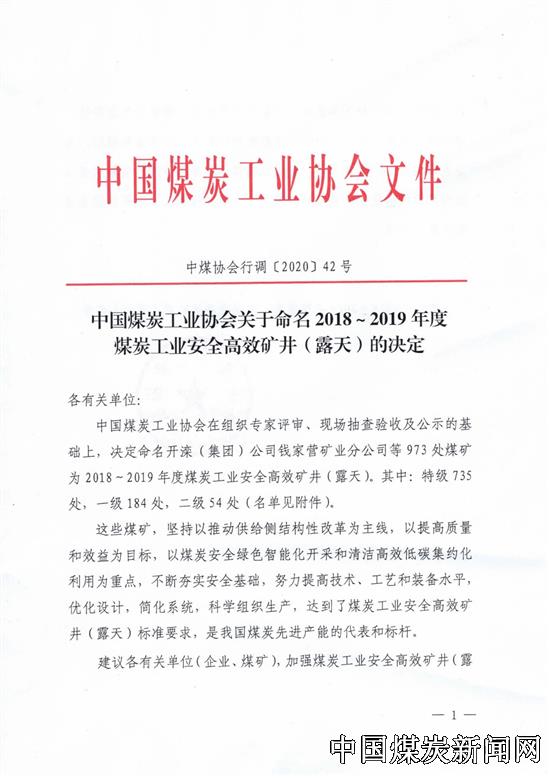 【本网讯】近日,中国煤炭工业协会印发《关于2018—2019年度煤炭工业安全高效矿井(露天)评审结果的公示》,陕西蒲白建庄矿业公司荣获“特级安全高效矿井”称号。