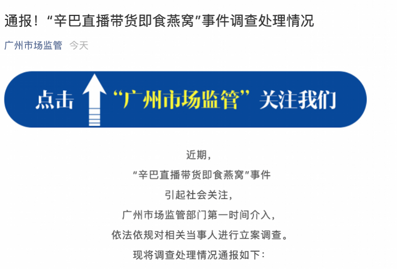 | 违反反不正当竞争法!辛巴直播间卖”糖水燕窝”,被罚90万 | |||