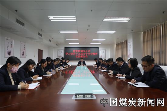 【本网讯】近日,冀中能源峰峰集团物资供销分公司党委书记刘书梁在公司三楼会议室为机关干部职工宣讲十九届五中全会精神。