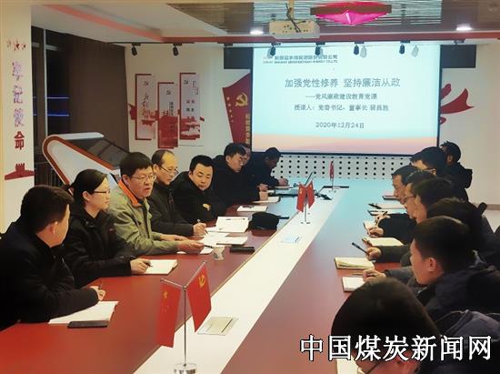 【本网讯】12月24日,陕西清水川能源股份有限公司党委书记、董事长裴昌胜在生产楼五楼党员活动室以“加强党性修养 坚持廉洁从政”为题,为运行党支部全体党员讲授廉政党课。