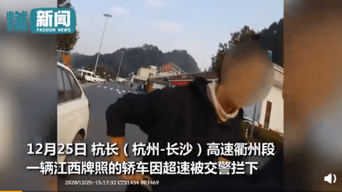 12月25日,杭长(杭州-长沙)高速衢州段,一辆江西牌照的轿车因超速被交警拦下。车上的女司机下车就要看交警的证件,质疑交警的身份和执法的合法性,态度恶劣语气嚣张。查看证件后,女子一再向交警索要被查收的证件,甚至恼羞成怒,对交警出言不逊,污蔑交警偷东西。交警耐心劝说,但女子态度始终嚣张,一直骂骂咧咧,把交警都气笑了。由于女子冥顽不灵,交警无奈之下选择报警,女子最终被警方带走。