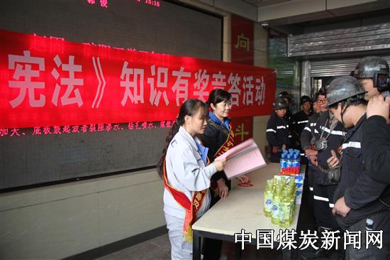 【本网讯】在“12•4宪法日”当天,河南能源焦煤集团赵固一矿工会和武保科通过发放法律知识宣传单、开展法律咨询法律法规知识有奖竞答等多种形式广泛开展职工群众喜闻乐见的法治宣传教育活动,在全矿营造了学法守法用法的浓厚氛围。 图为12月4日,该矿工会在井口开展学习法律法规知识有奖竞答活动现场。