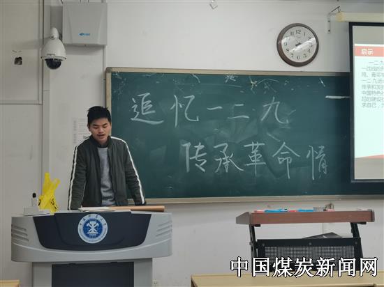 【本网讯 】12月5日,中国矿业大学化学工程与工艺2018-3班在博学4号楼C207室开展“追忆一二九,传承革命情”主题班会。此次班会由团支部书记蔡春昊同学主持,班级同学均准时参与此次班会。