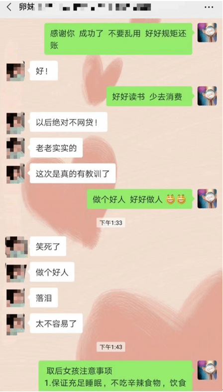 代孕卖卵中介向记者展示合作医院的环境。 为了打消记者的顾虑,中介解释称,供卵是一对一服务,全程无身体接触,也不会给客户留下任何关于供卵者的联系方式,不会有隐患。全程保密,不公开。 当记者询问这种有偿卖卵是否违法时,中介辩称,这并不违法,代孕捐卵在国外都是合法的,在中国属于灰色行业。“永远都是饿死胆小的,撑死胆大的。” 中介甚至向记者暗示,校内卖卵的女大学生不少。他称,大学现在是封闭式管理,外人进不去。但是高校里有广告,这就能证明:都是校内卖过卵的学生,帮中介写的广告。 “现在年轻人开支大,女人花钱的地方多。”中介展示的聊天记录显示,一位“卵妹”为了还清网贷而卖卵。