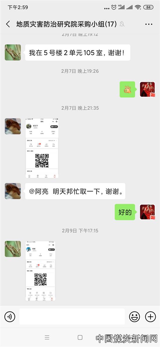 “好的,没问题!” “我刚外地归队,家里没有消毒液了,帮我买两瓶84消毒液吧!” “收到。明天集中采购一批,大家还有需要的一块给我说。” ![]() 为了有效控制疫情,最大程度减少人员流动,防止交叉感染,2月4日,山东省煤田地质局第一勘探队瓦斯灾害防治中心党支部经讨论决定,成立了瓦斯灾害防治中心生活必需品采购小组,为外地返队在家进行14天自我隔离的职工提供物质生活保障。采购小组组长张亮和组员张宝强每天为在家隔离的职工提供新鲜蔬菜、水果和其他生活必需品,保证在家自我隔离职工的生活需求。 ![]()