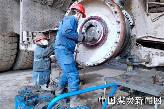 近日,为保证煤炭产量,国家能源投资集团准能设备维修中心进一步加强设备日常巡检力度,对设备关键部位和系统进行深入细致检查,认真做好隐患排查与整治工作,从源头上消除设备缺陷和隐患,全力保证疫情防控期间设备高效运行。图为该中心职工正处理设备制动故障。