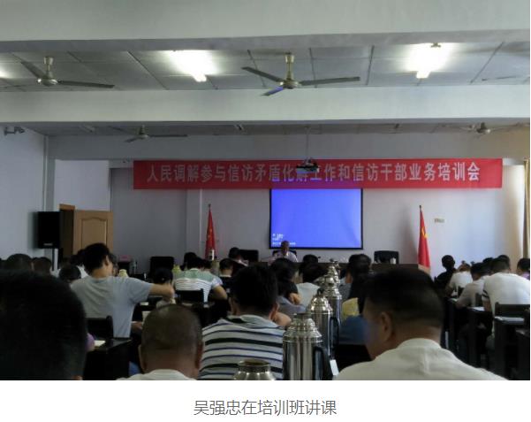 吴强忠充分发挥特长,为全县调解、信访干部培训上课传授调解技巧和方法20余次、受益达2600余人次,为预防纠纷、促进和谐起到了极大作用。且不说,他又无偿担任两个街道、一个乡镇、40余个行政村、8个社区的法律顾问;毎月还在退休支部,组织老年人学习和传授法律知识。