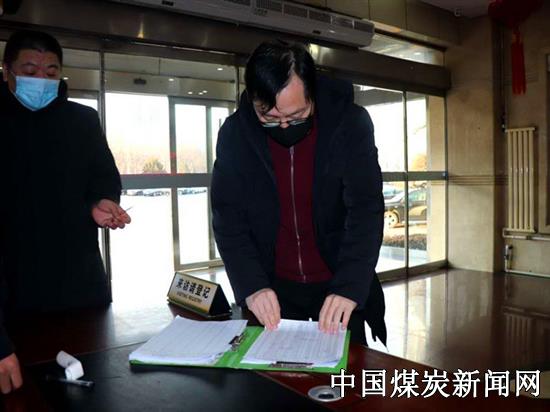 ![]() 栗宏强在屯兰矿办公楼查看工作人员出入记录