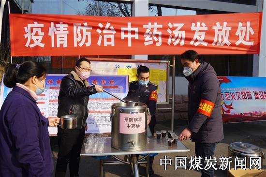 【本网讯】新型冠状病毒感染肺炎疫情的防控进入关键期,为坚决打赢疫情防控阻击战,河南焦煤能源九里山矿机关党支部充分发挥党组织和党员先锋模范作用,在该矿餐厅门口和井口为职工送上防疫中药汤.图为送汤现场.