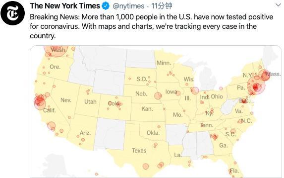 | 美国新冠肺炎确诊破1000例,美媒:社区已广泛传播 | |||